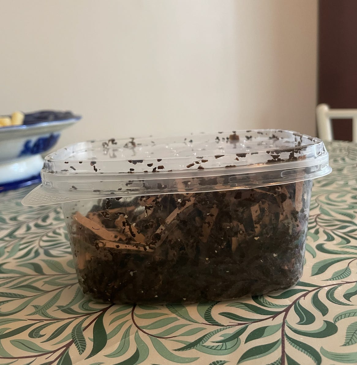 Madot saapuivat nopeasti kirkkaassa pakasterasiassa, jonka kanteen mies oli tehnyt ilmareikiä. Madoilla oli pehmusteena kosteaa multaa ja aivan ohueksi silputtua aaltopahvia. Ne eivät vaikuttaneet olevan matkasta moksiskaan, vaan kiemurtelivat purppuraisina ja kosteina ketterästi pakoon valoa, kun avasin pakkauksen.